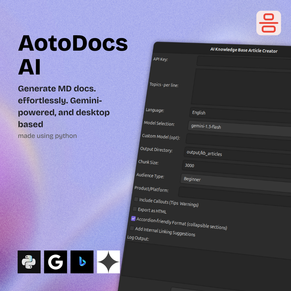 Meet the AI Knowledge Base Article Creator, a desktop tool that helps you generate professional-grade documentation using Google Gemini AI — tailored for technical writers, support teams, developers, and product managers.