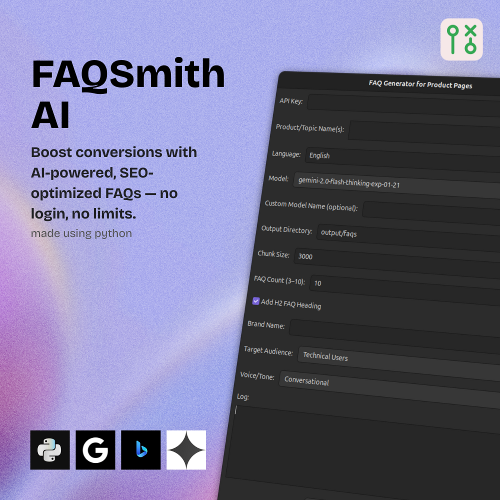 FAQSmith Pro is a downloadable desktop tool that helps you create detailed, trust-building, and search-optimized FAQs for any product or topic in seconds.