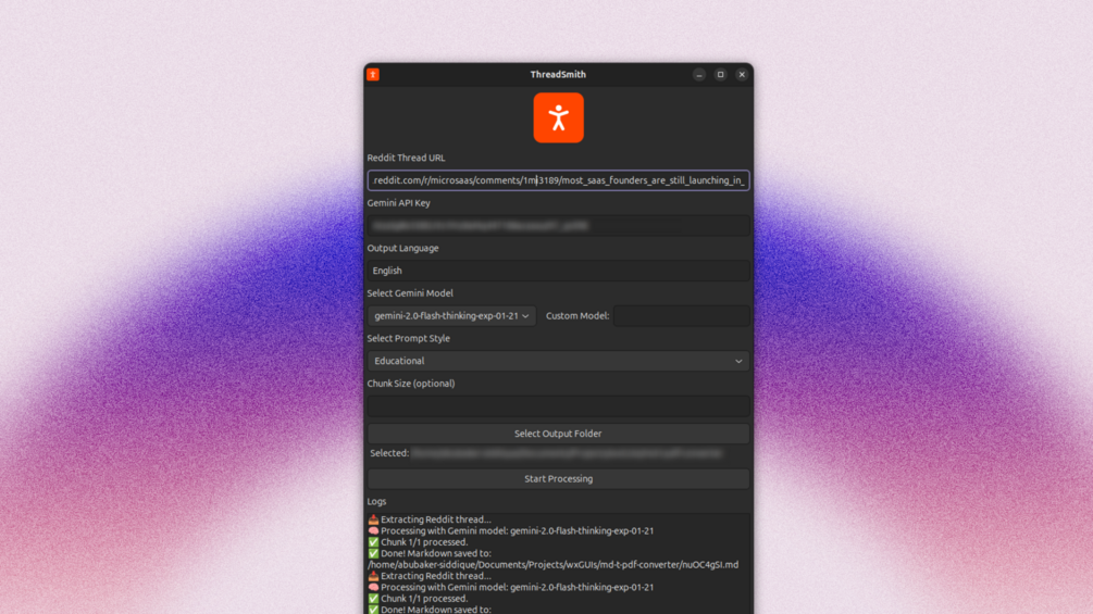ThreadSmith is a powerful desktop application designed to transform Reddit discussions into clear, structured, and insightful content — quickly and effortlessly.